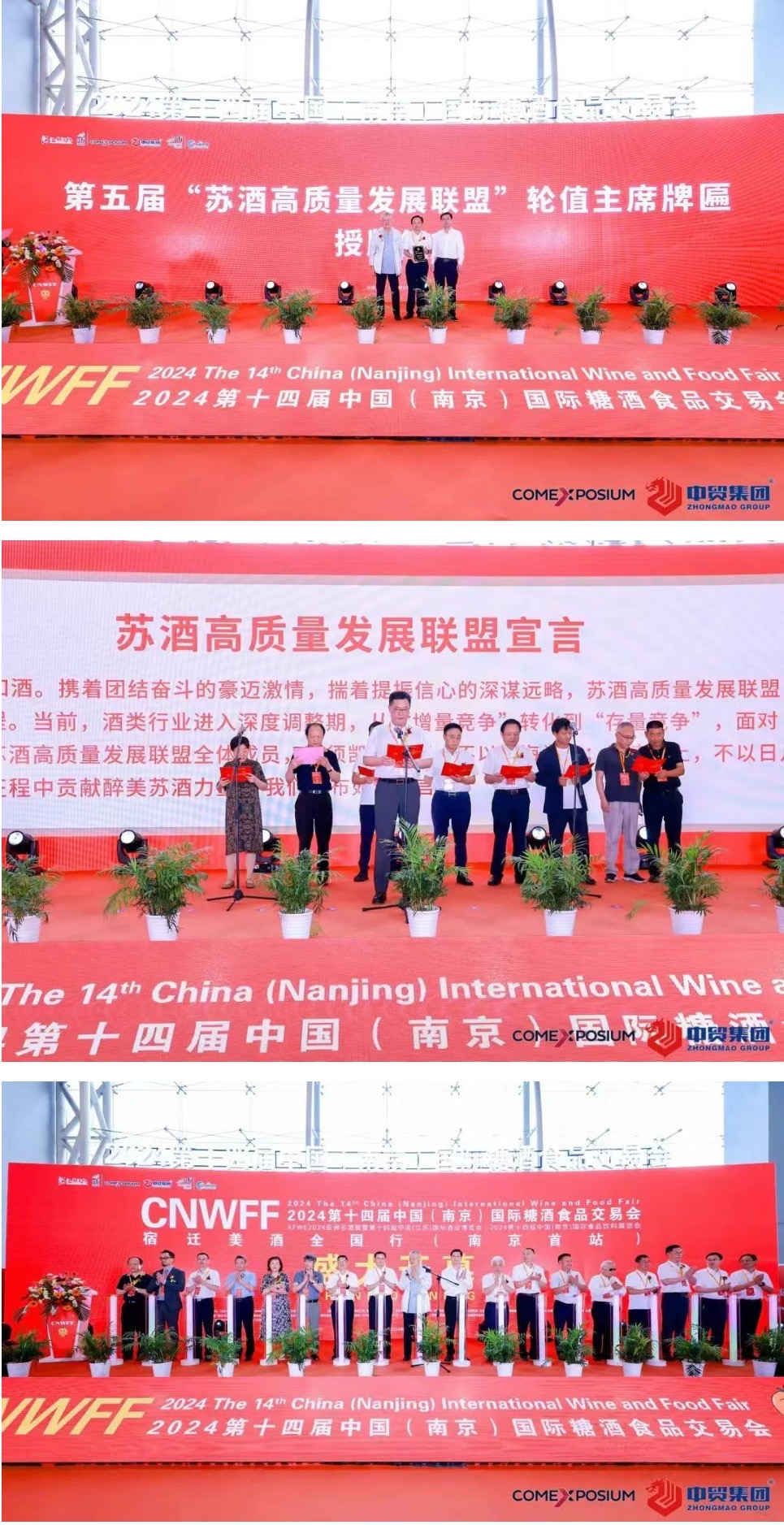 第十四屆南京糖酒會,由中國酒業(yè)協(xié)會、中國酒類流通協(xié)會、江蘇省工業(yè)和信息化廳、江蘇省商務(wù)廳、江蘇省工商業(yè)聯(lián)合會指導(dǎo),江蘇省財貿(mào)輕紡工會、南京市商務(wù)局支持,江蘇省酒類行業(yè)協(xié)會、法國高美艾博展覽集團、中貿(mào)科技集團、中法合資高博中貿(mào)國際會展集團主辦,中法合資高博中貿(mào)國際會展(南京)有限公司承辦,宿遷市酒產(chǎn)業(yè)發(fā)展促進(jìn)中心戰(zhàn)略合作。