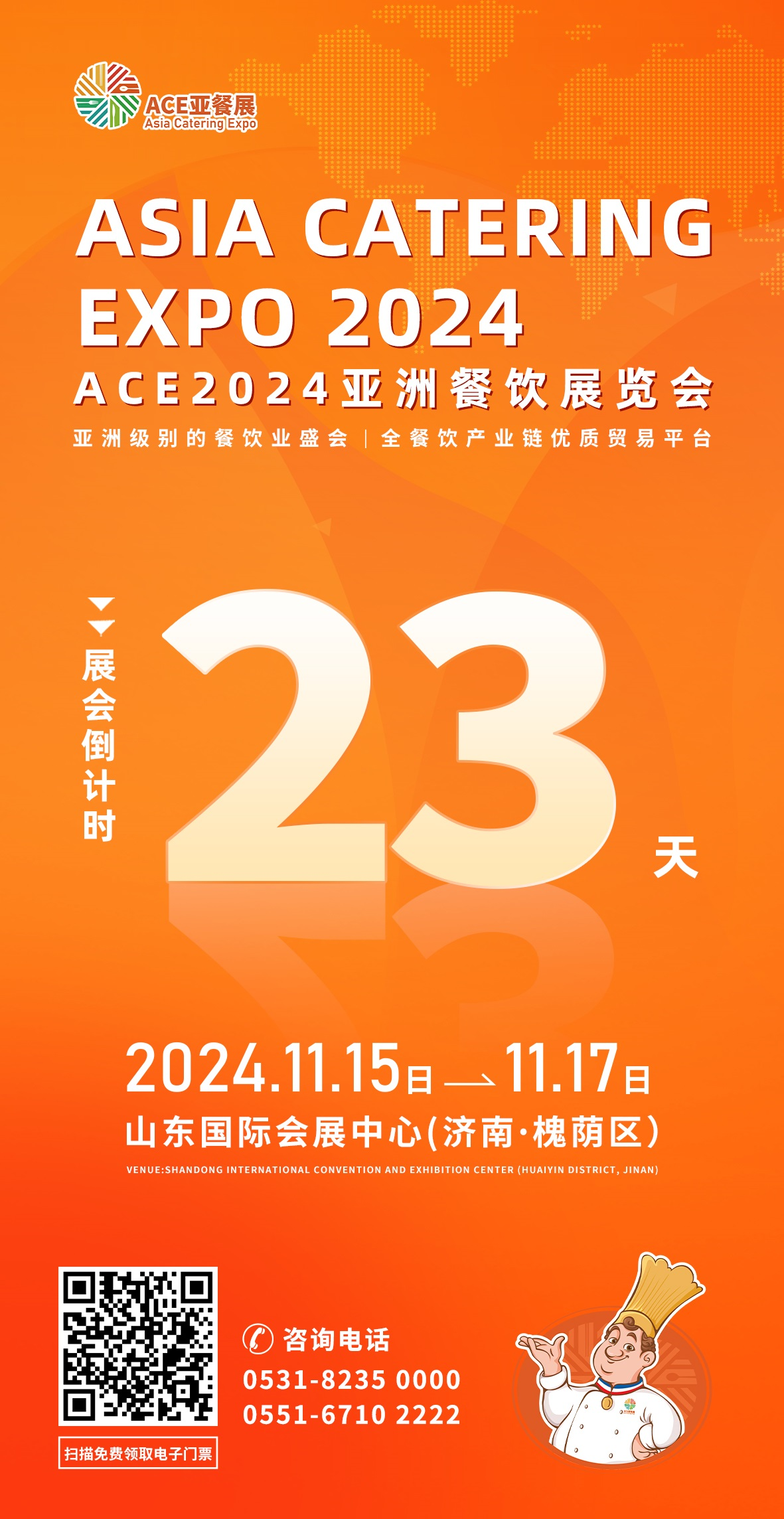 ACE2024亞洲餐飲展覽會(huì)(簡(jiǎn)稱ACE2024亞餐展)將于11月15日在濟(jì)南市山東國(guó)際會(huì)展中心盛大開(kāi)幕。展會(huì)將持續(xù)至11月17日。