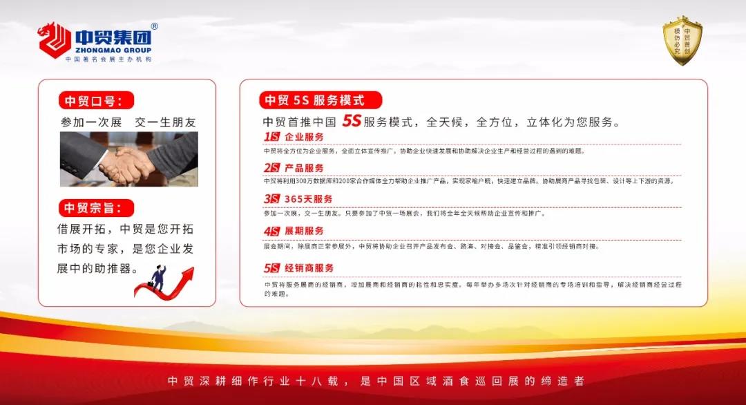 本屆南京糖酒會全面升級,展會形象統(tǒng)一升級。在展會現(xiàn)場設置VIP采購商專區(qū),專區(qū)內(nèi)設有茶點網(wǎng)咖服務。在酒類展區(qū)、葡萄酒及烈酒展區(qū),組委會免費為參展商提供洗杯與換杯服務。組委會還開發(fā)了展商與采購商匹配系統(tǒng),實現(xiàn)線上一鍵預約,展會現(xiàn)場見面洽談,實現(xiàn)服務一鍵式平臺化,展銷精準高效化。